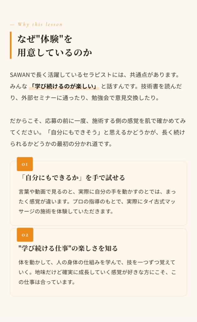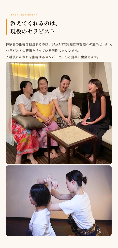 また経験者の方の場合、Sawanの施術を知っていただける機会にもなると思います。